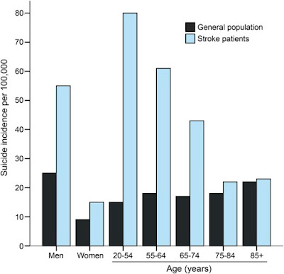 But here is the twist in suicide: Stroke survivors are more than twice as likely (learned opinions say even higher) to attempt suicide within a decade of their stroke than non-stroke patients, according to a nationwide study of more than two million Taiwanese adults.
